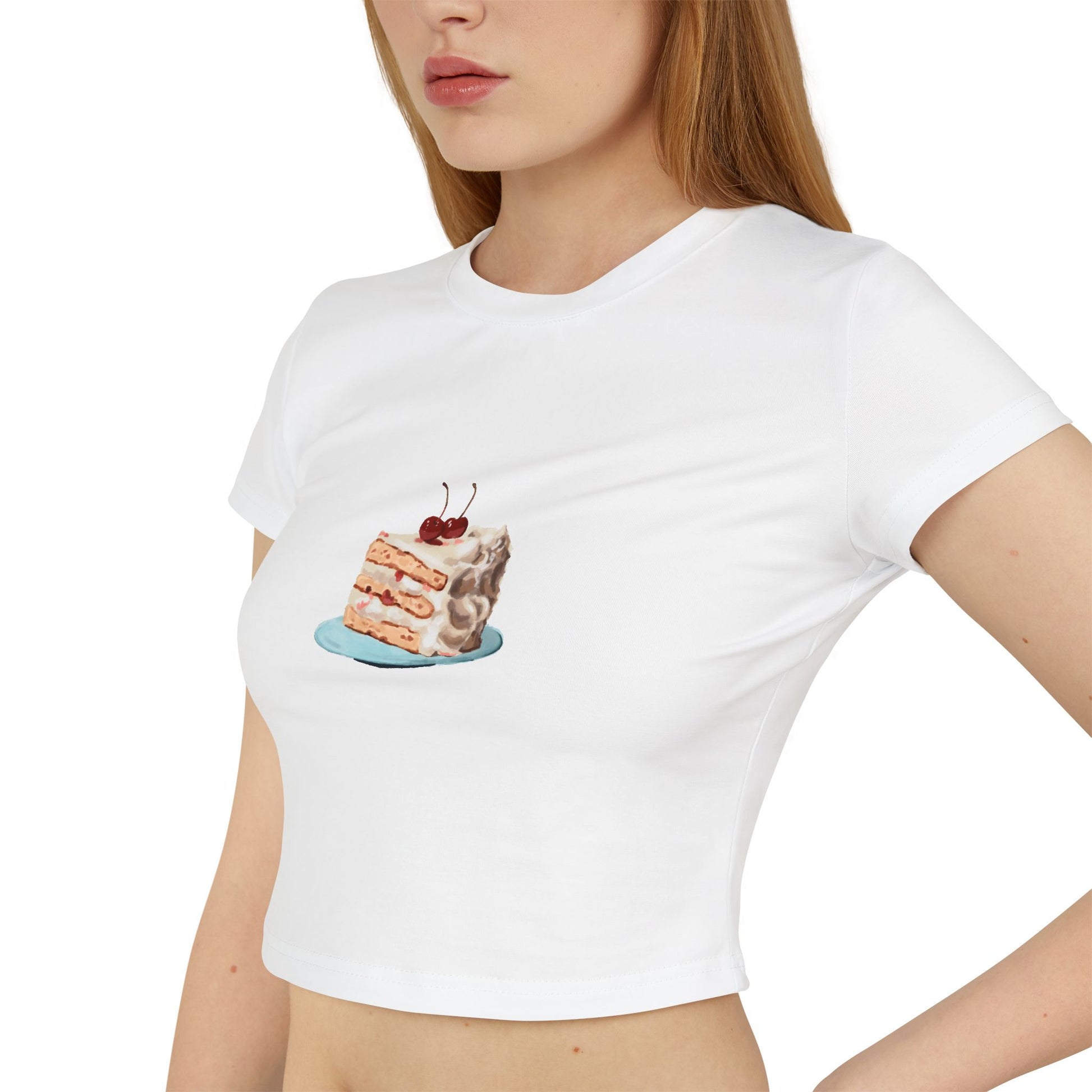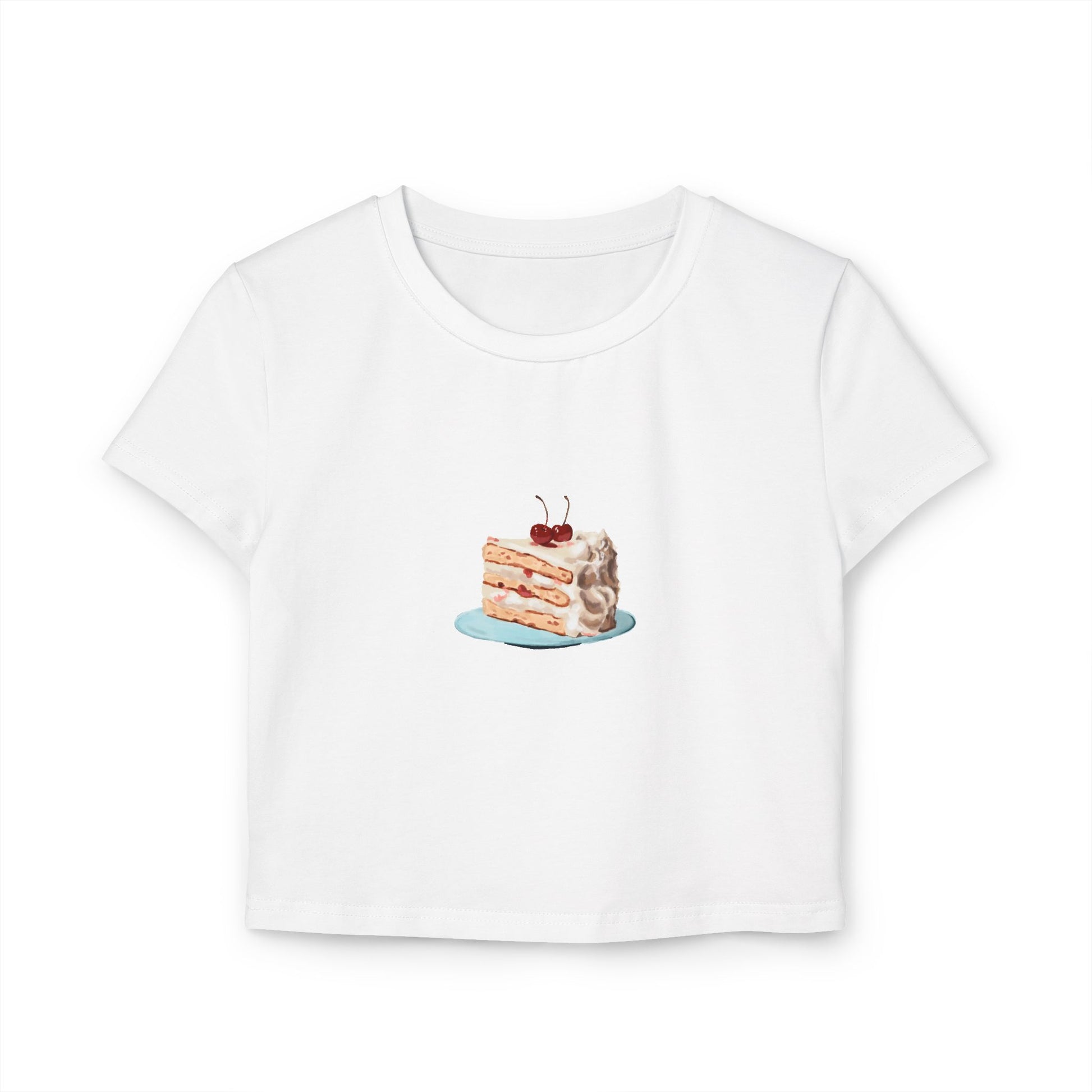 Slip into this airy baby tee for golden-hour strolls, brunch on the patio, or that first bite of cherry buttercream cake. Featuring a hand-drawn cherry cake illustration, this piece is breathable 100% Cotton, soft, and made for leisurely afternoons. Pairs perfectly with linen skirts, denim cutoffs, and bare feet on hardwood floors.